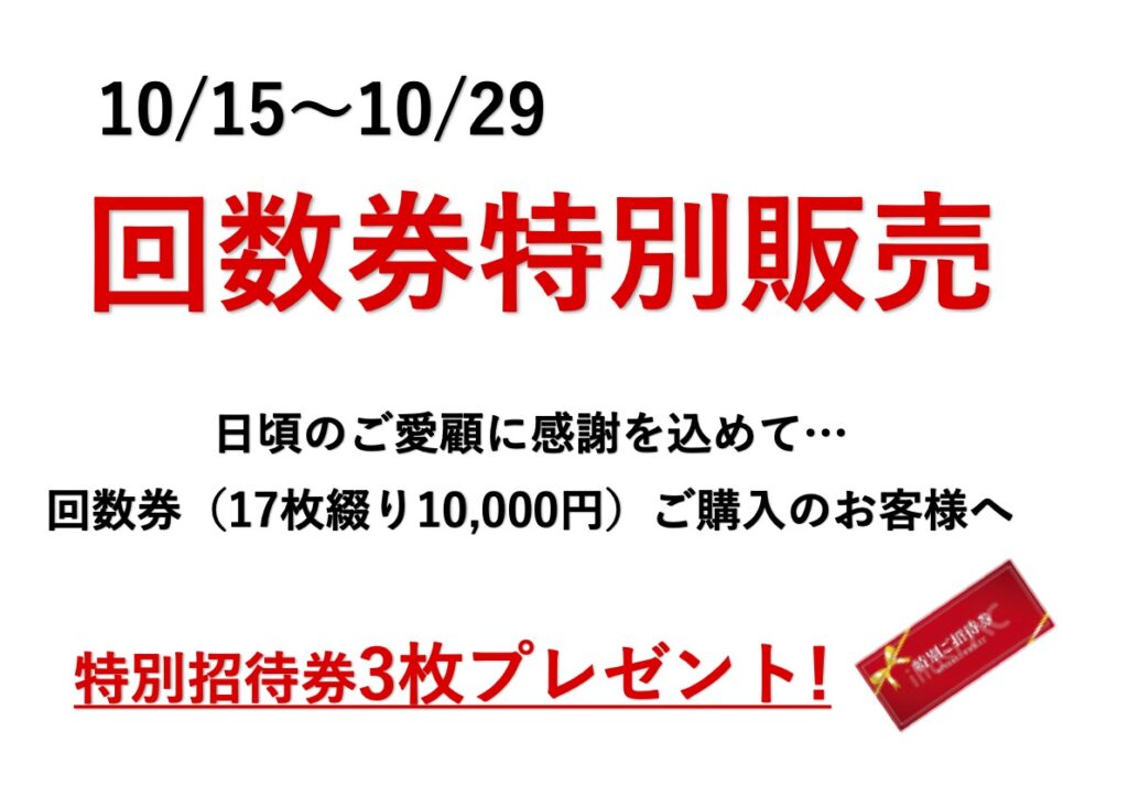 10月29日まで!お得な回数券特別販売のご案内!