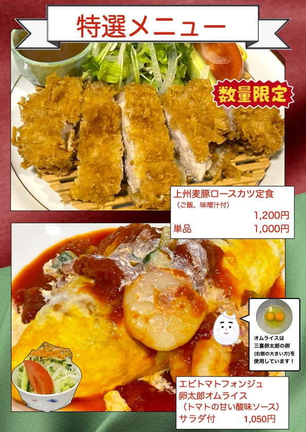 ※食堂の中休み中もお飲み物、デザート類はご注文頂けます。